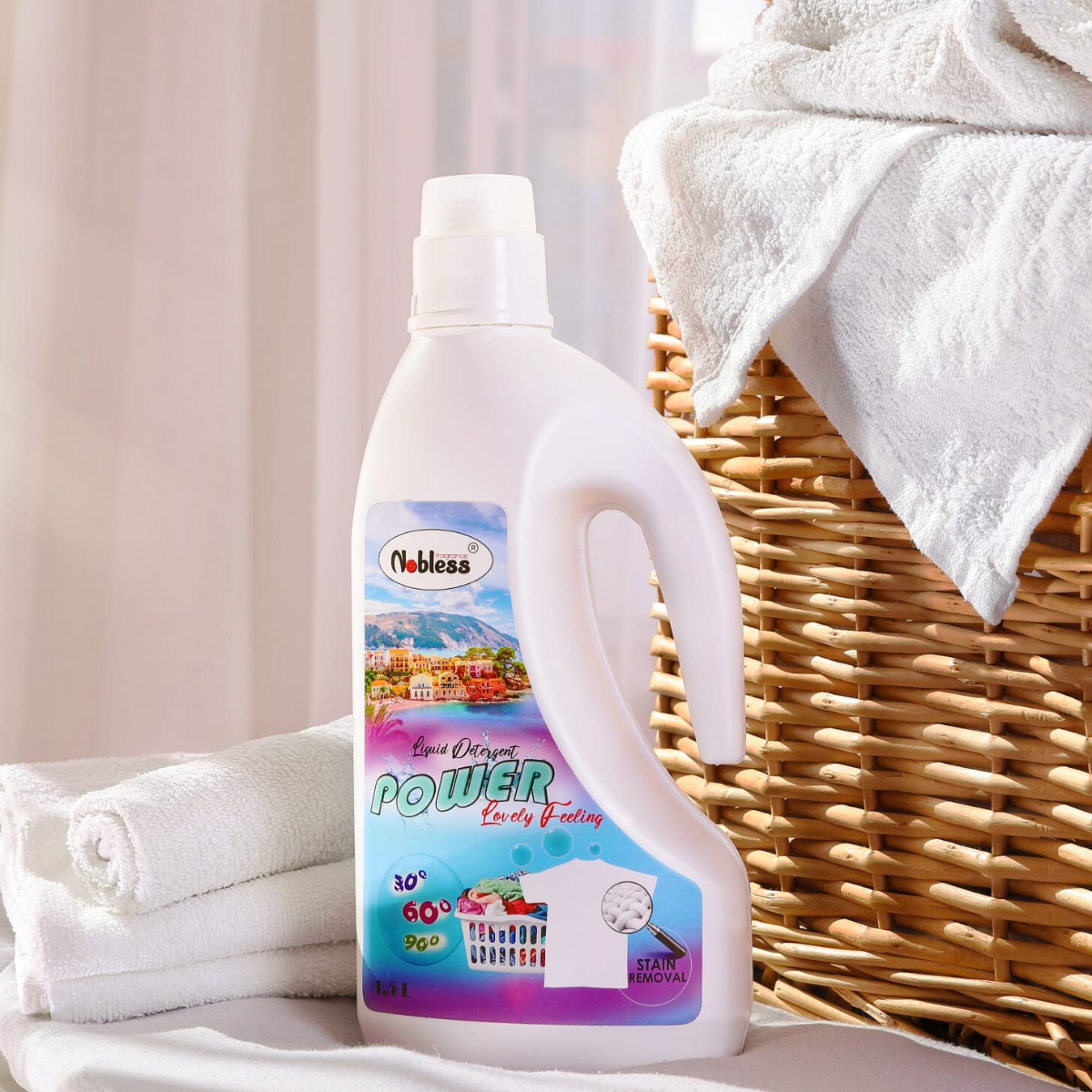 3 lucruri pe care le cumpărai separat într-o singură formulă. Care sunt cele 3 lucruri pe care le cumpărai separat? Detergent pentru rufe + soluție pentru scos pete + soluție pentru menținerea culorii hainelor. Cu noul detergent pentru rufe Nobless Fragrance 3 în 1 cu formula sa unică de curățare, igienizare, color protect și scos pete, hainele tale vor fi mult mai curate, parfumate și strălucitoare. Bicarbonatul de sodiu participă la mărirea performanței de curățare îndepărtând murdăria și petele lăsând țesăturile curate și moi.